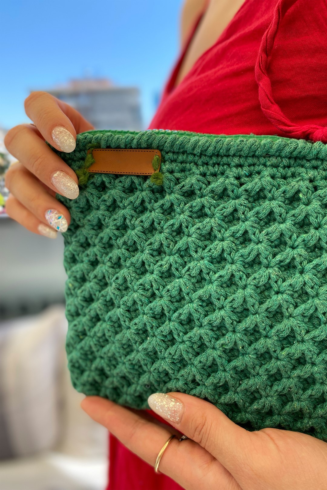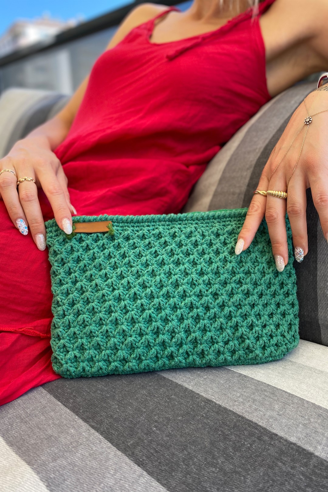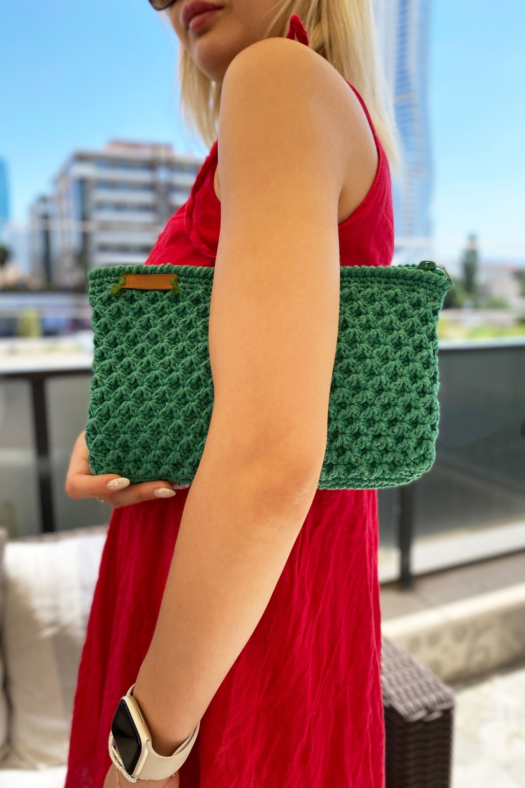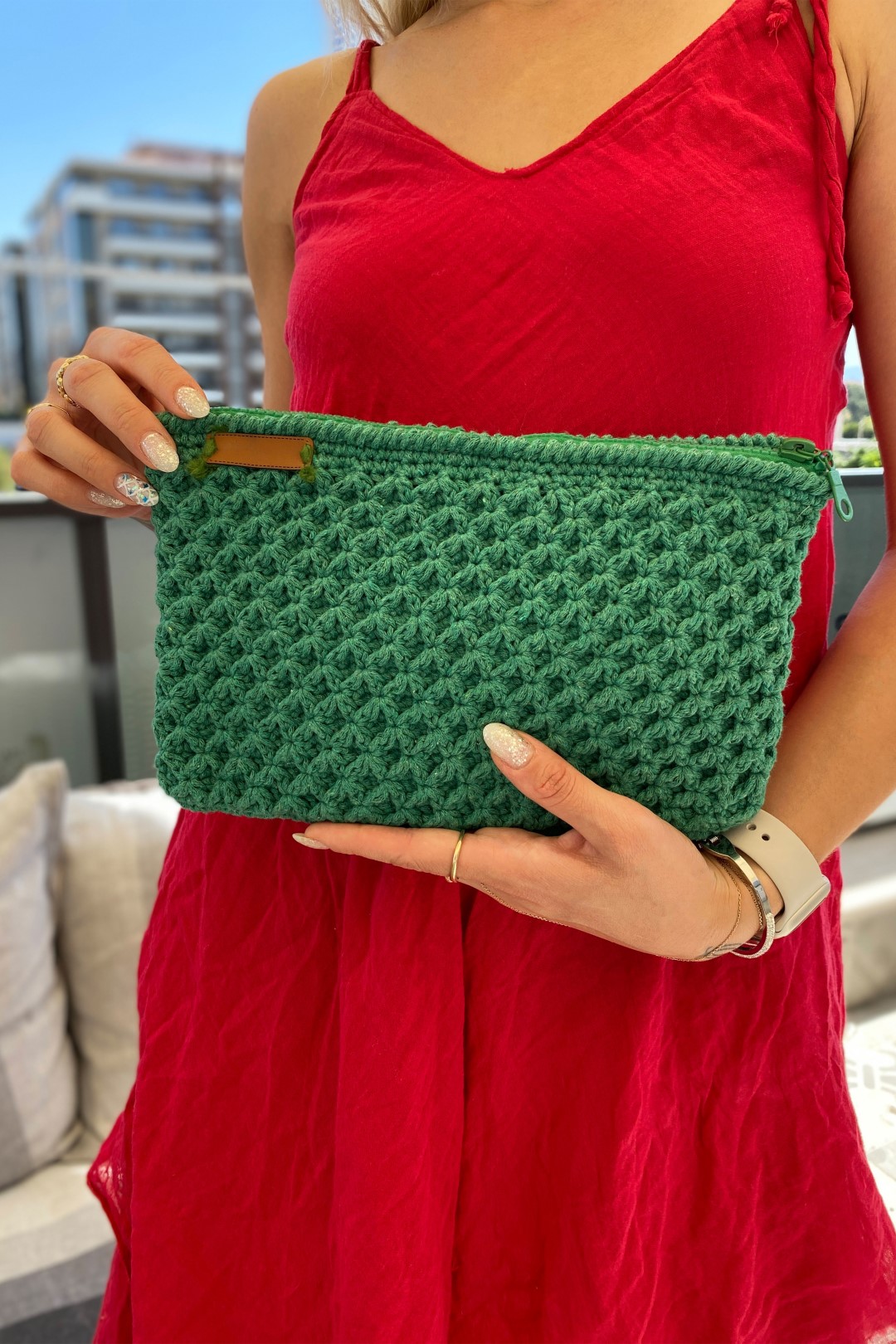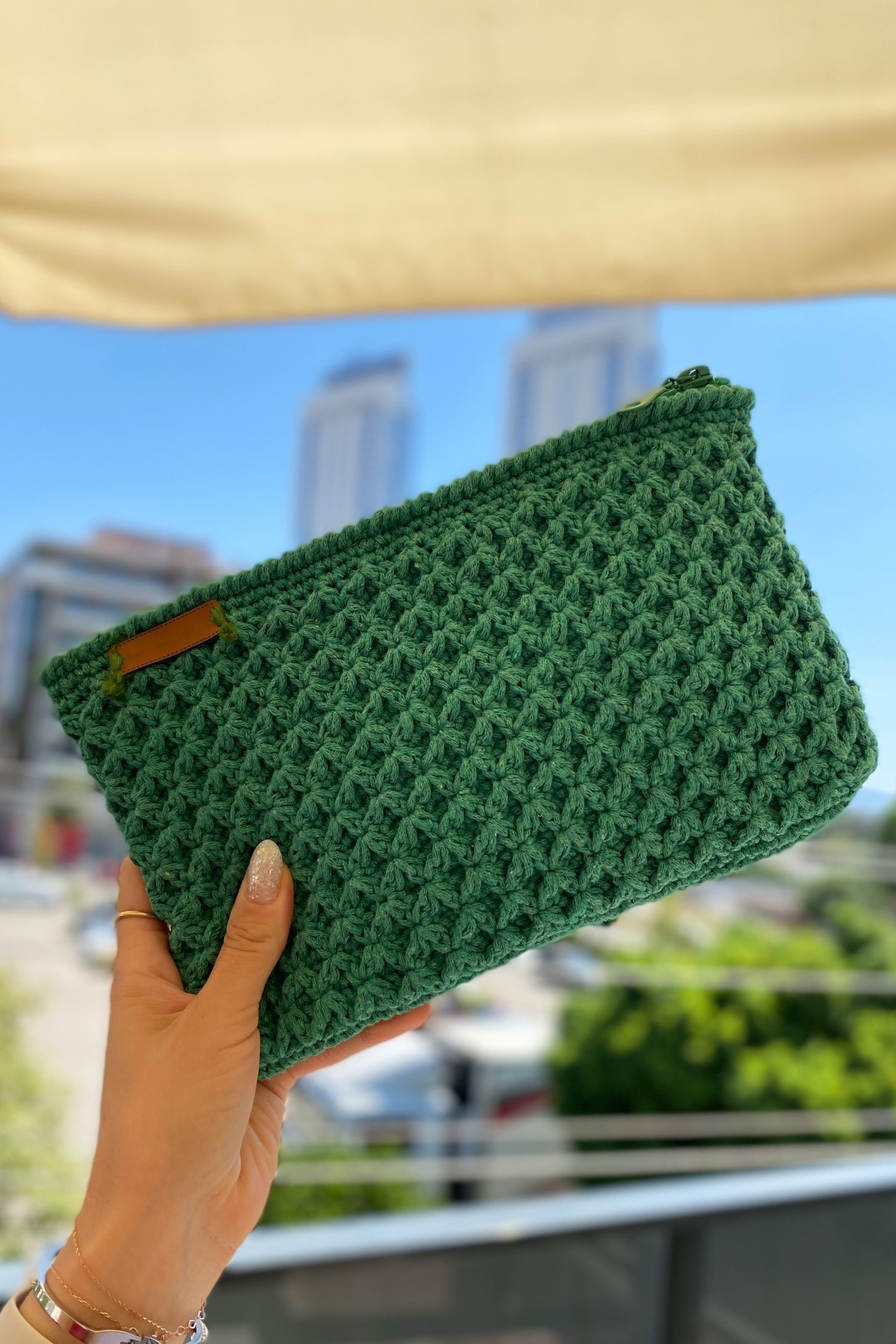 Fermuarlı Makrome Özel Tasarım El Çantası YEŞİL