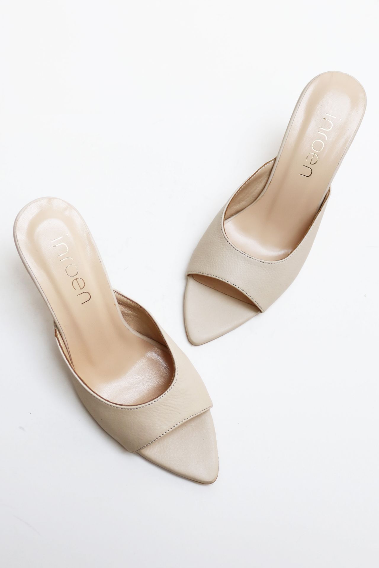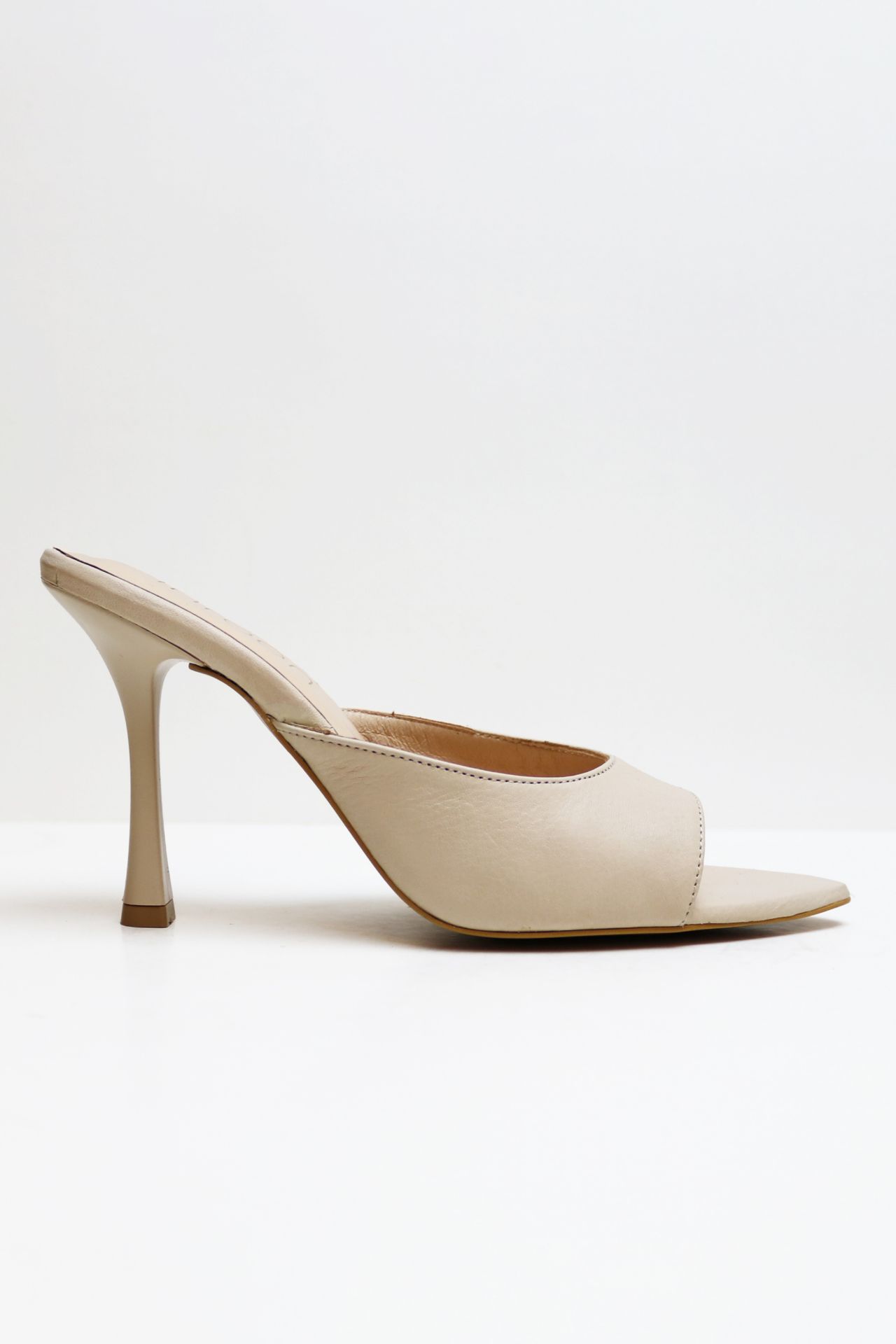 Sivri Burun Hakiki Deri Topuklu Terlik TEN