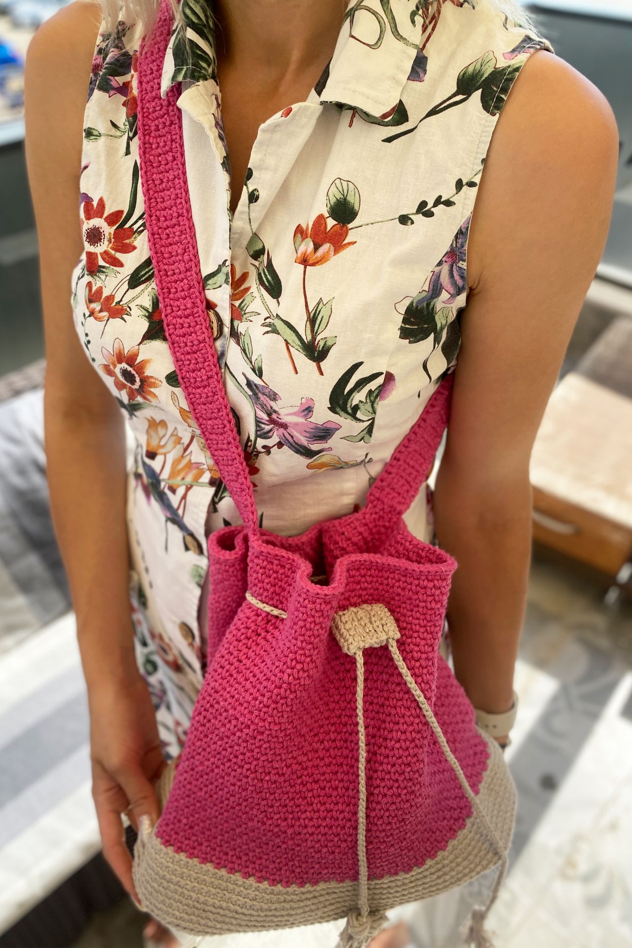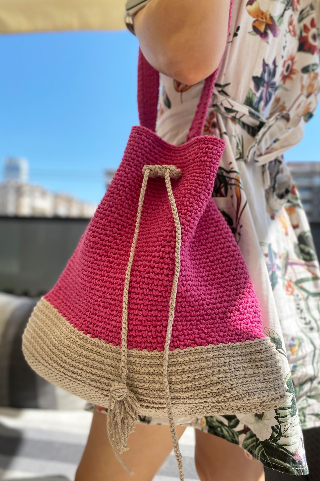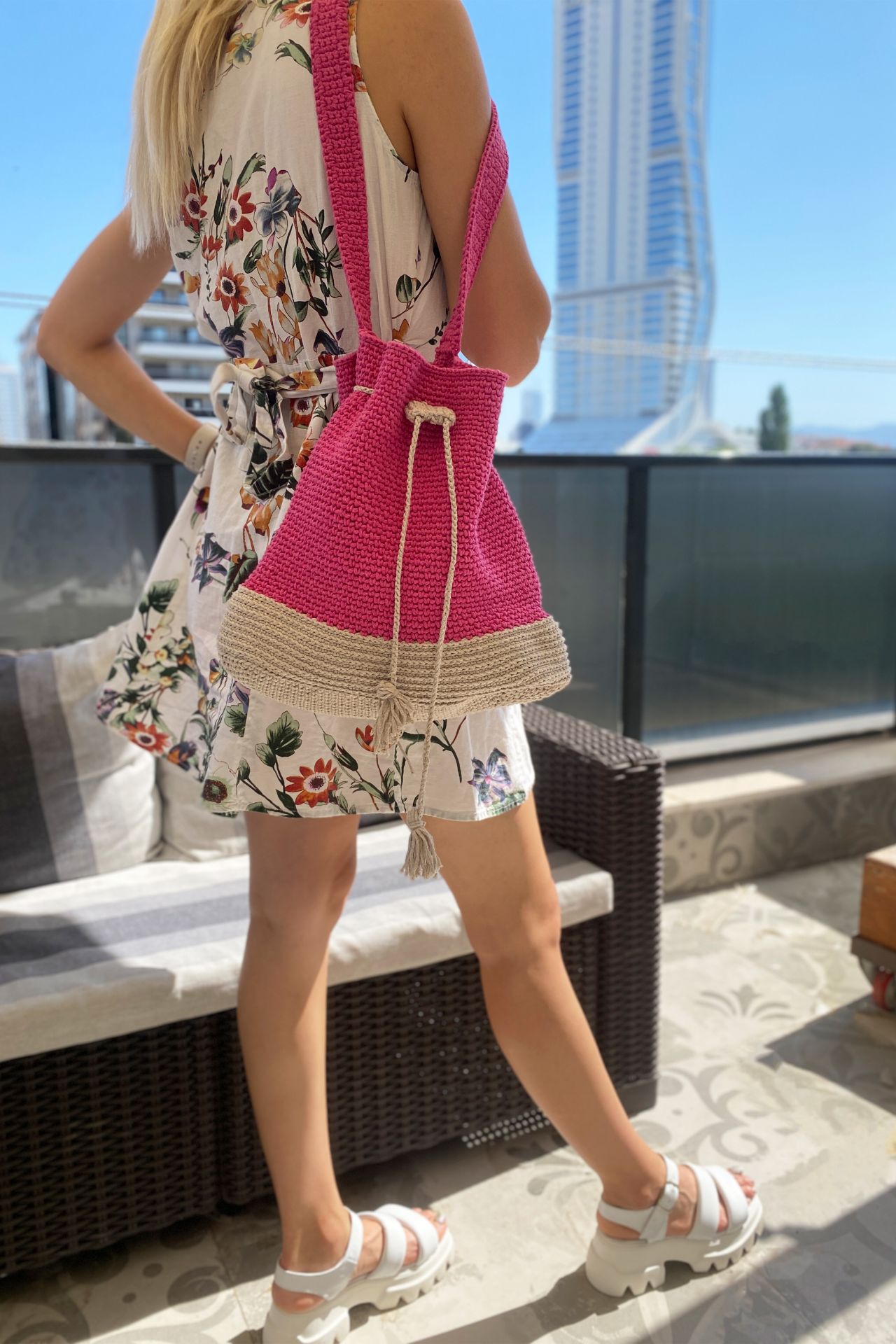 Makrome Örgü Büzgü Detaylı Özel Tasarım Omuz Çantası PEMBE BEJ