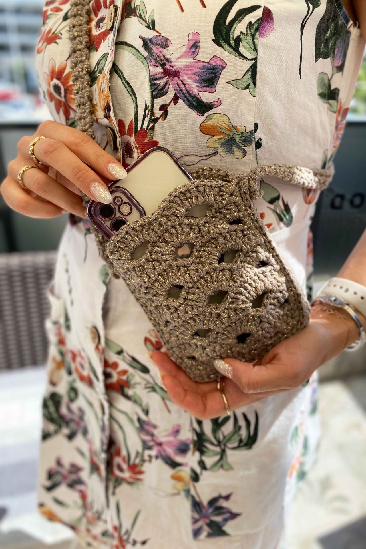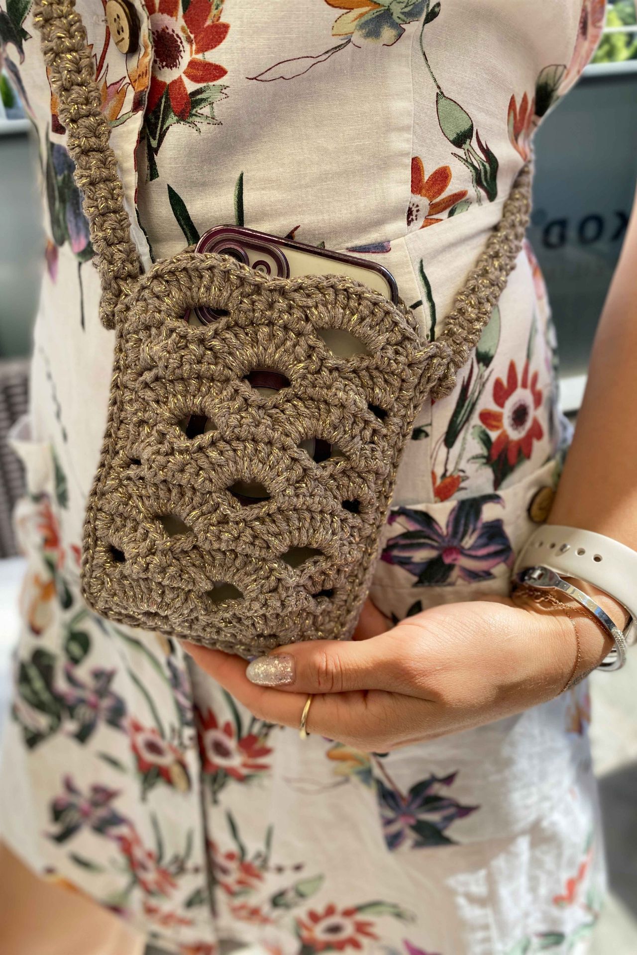 Makrome Coton Özel Tasarım Telefon Çantası SİMLİ GRİ