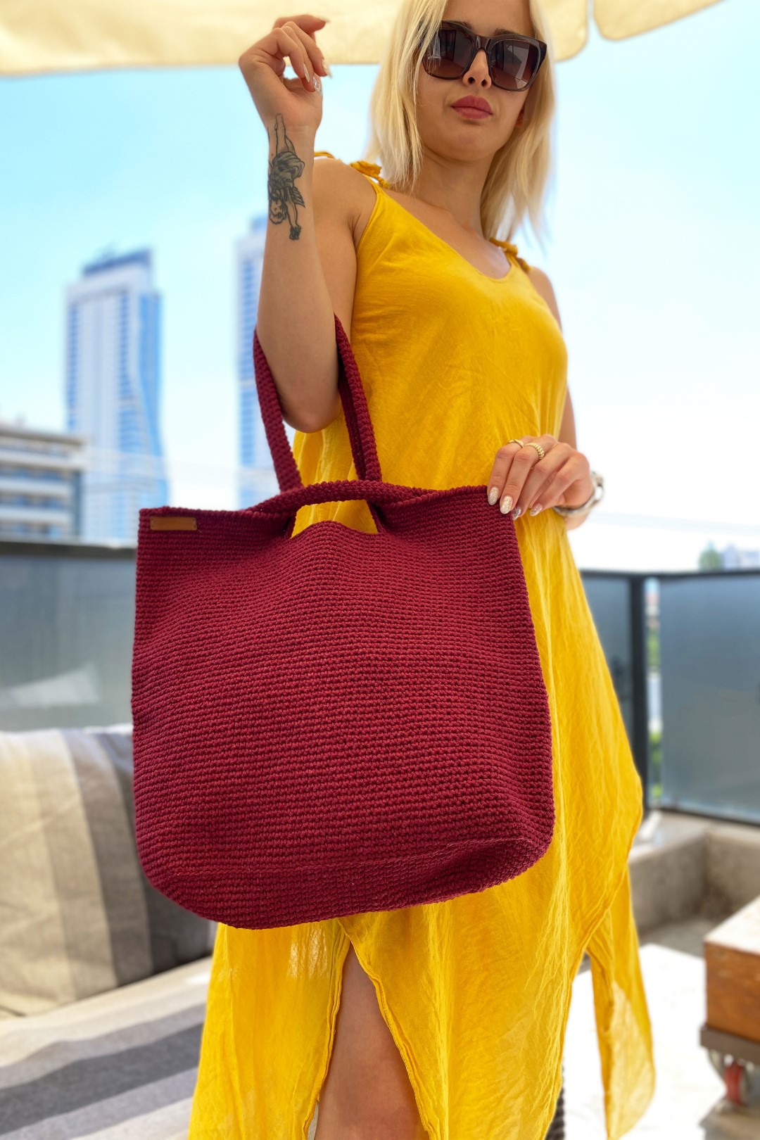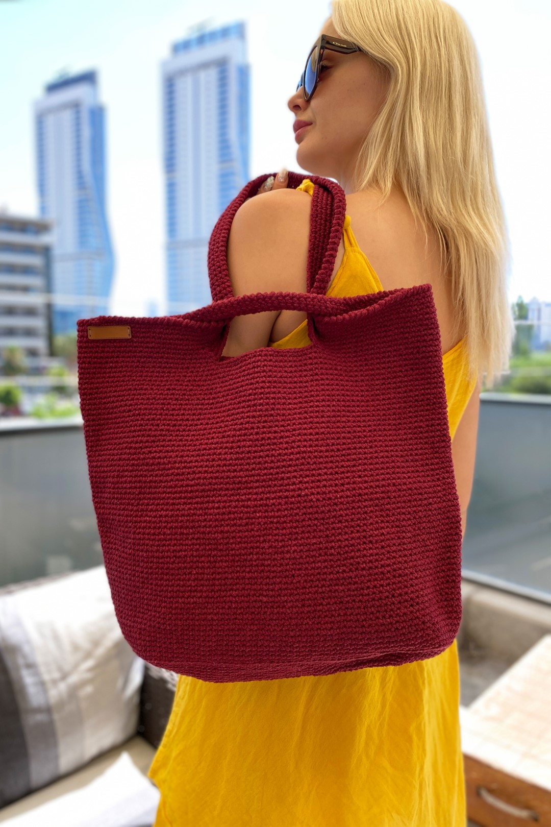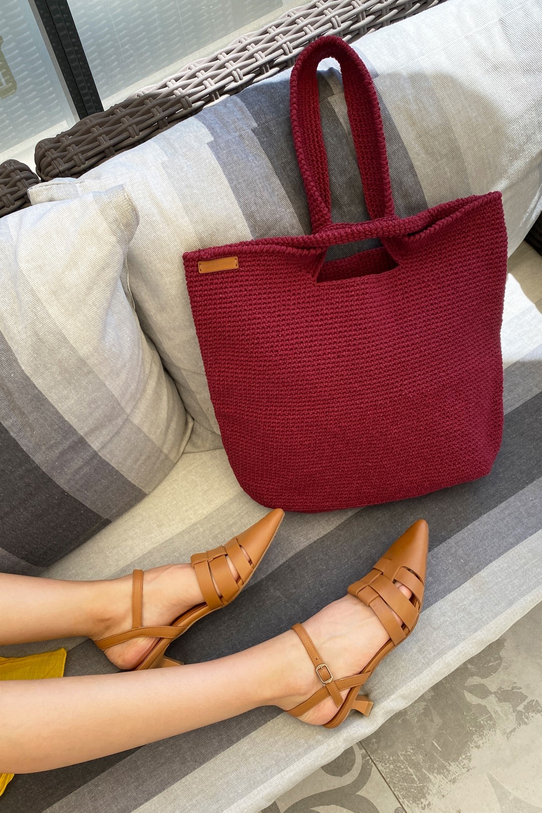 Tığ Işi El Örgüsü Omuz Çanta VİŞNE