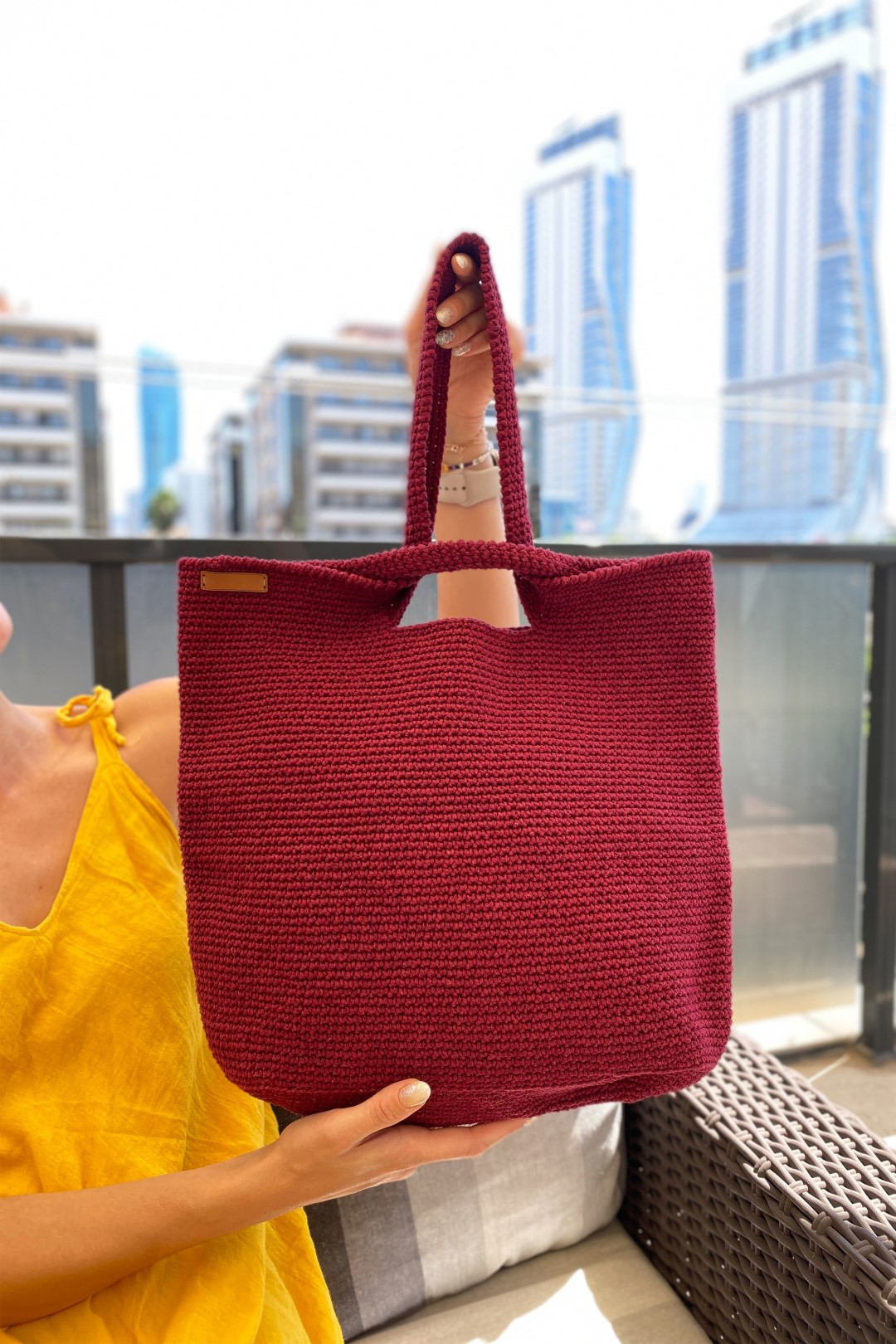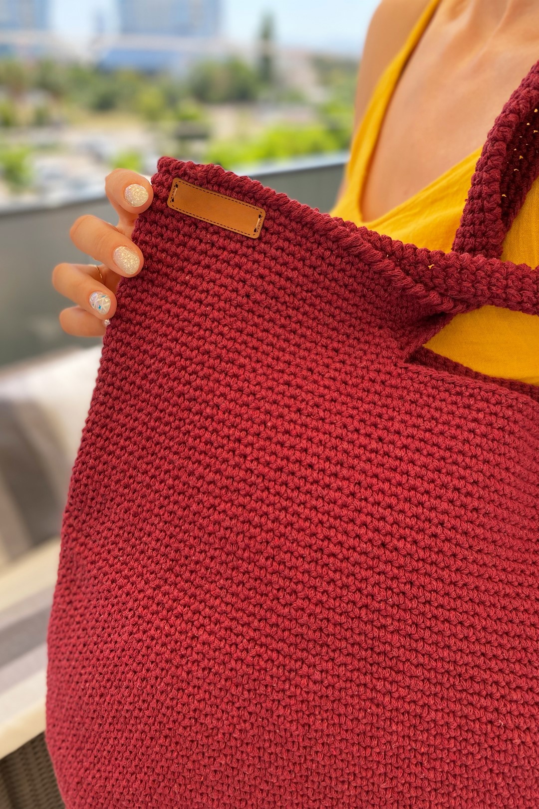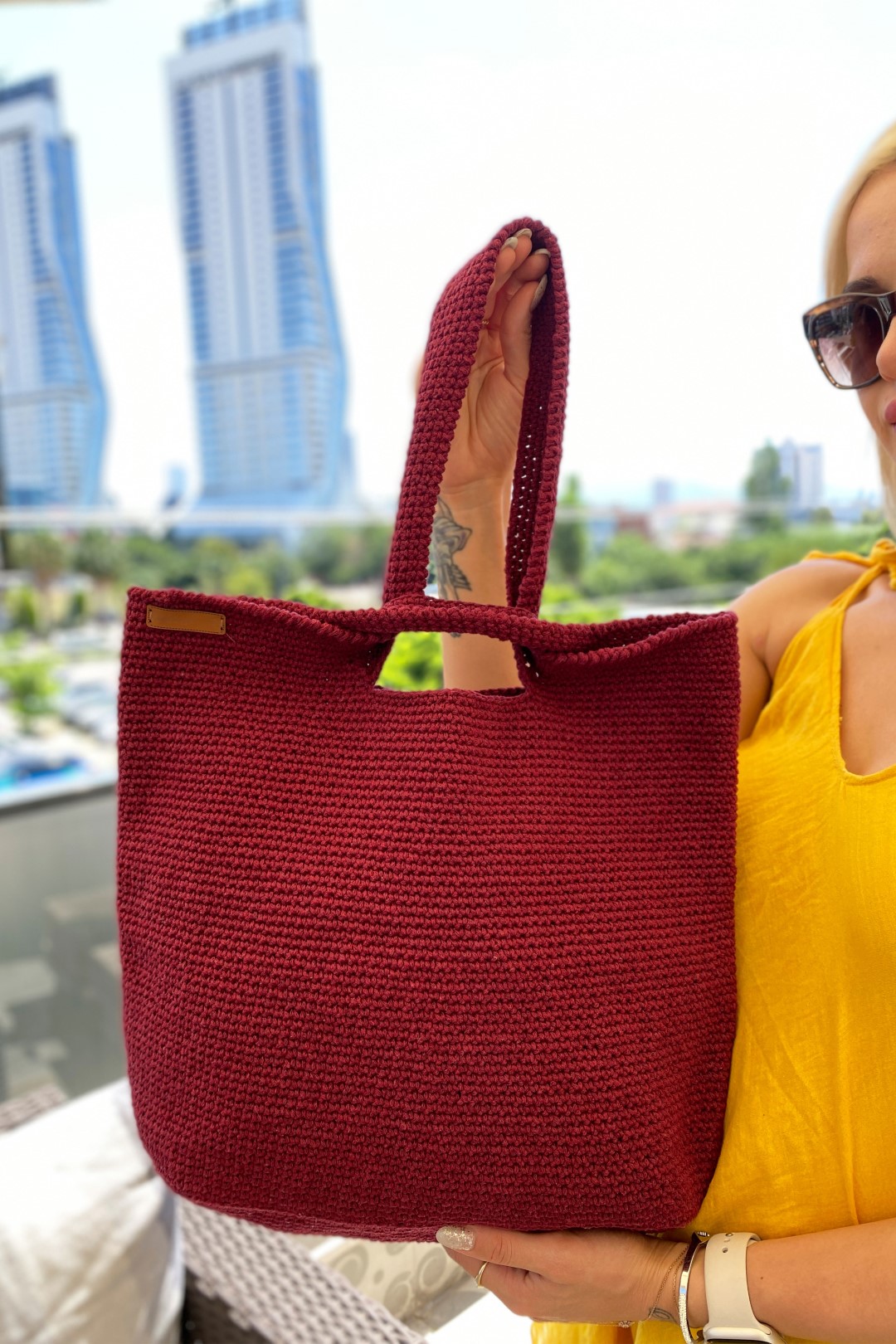 Tığ Işi El Örgüsü Omuz Çanta VİŞNE